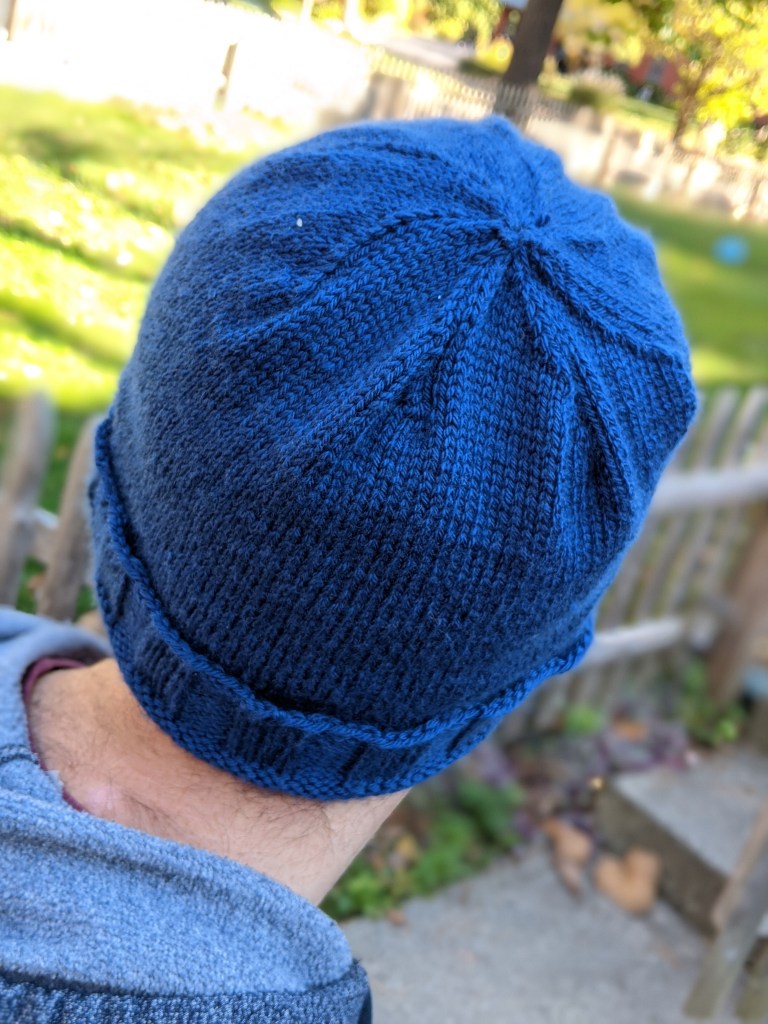 - Adult hat, self-drafted (superwash, fingering weight merino blend)
