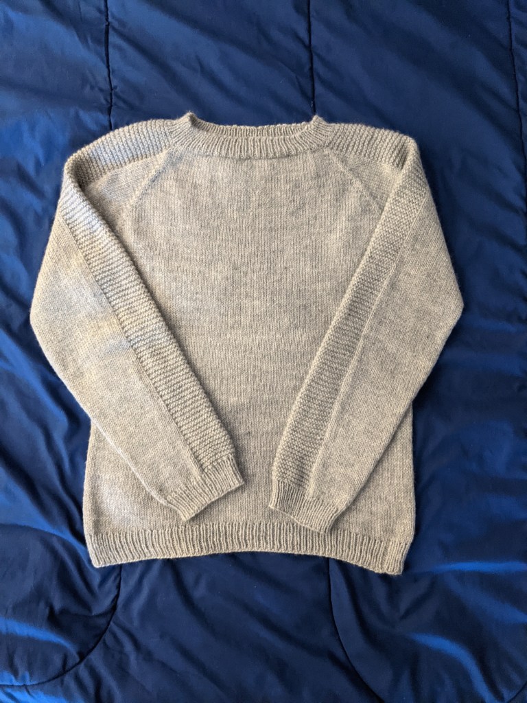 - Adult sweater, Tin Can Knits Flax pattern (Stonehedge Fibers Shepherd’s Wool)