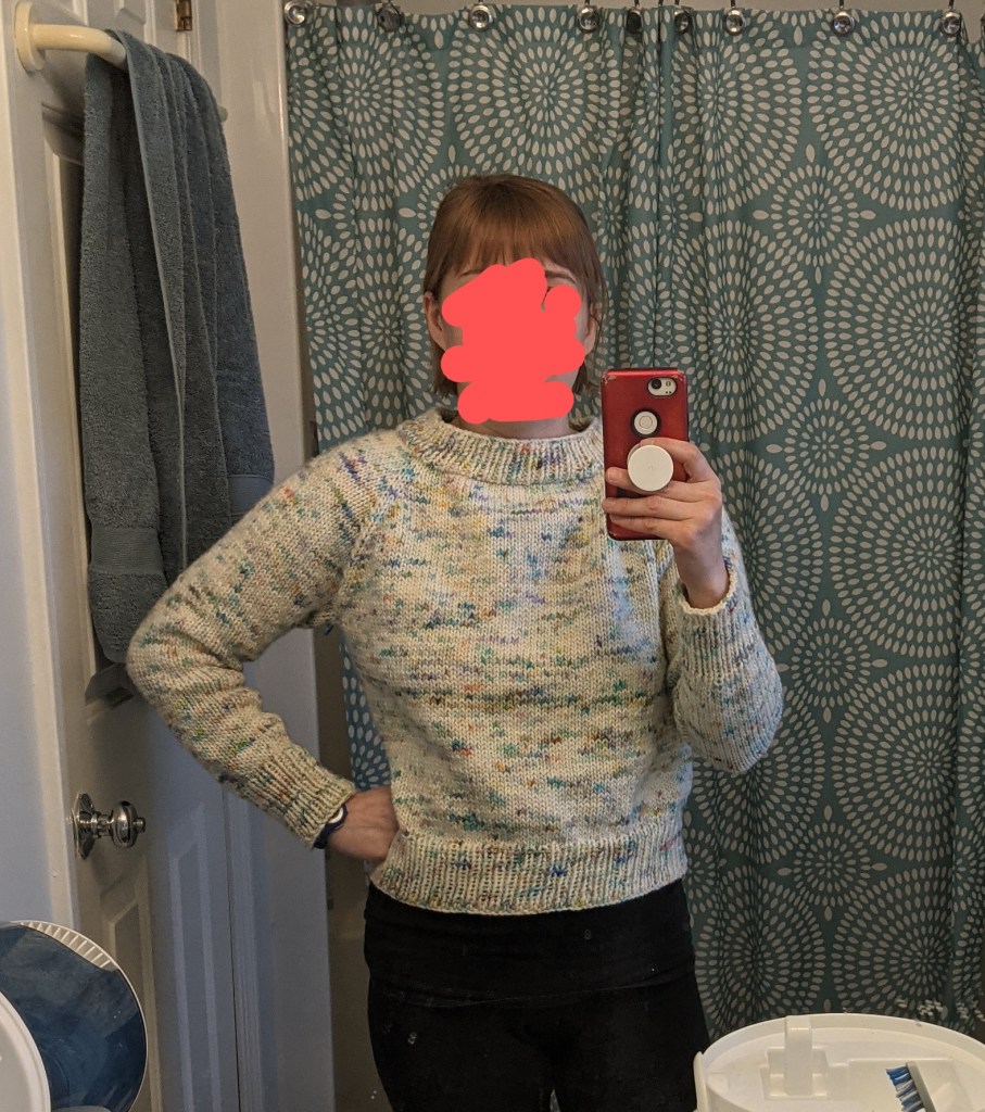 After feeling confident in my decreases, increases, and holding stitches on waste yarn, I embarked on a sweater for my husband. It only took 5 months. Yes, 5 months. The Christmas gift became the Valentine’s Day gift. Next up was a sweater for me, which hummed along much quicker, thanks to thicker yarn (almost TOO thick, IMO) and my previous experience with the pattern. There was some weird color pooling in the middle that made a dark stripe that may have been due to attaching a new skein, and altogether I’m pretty darn happy with it. I ripped things out and re-knitted them—a process that I’ve finally gained the patience and skills to undertake.